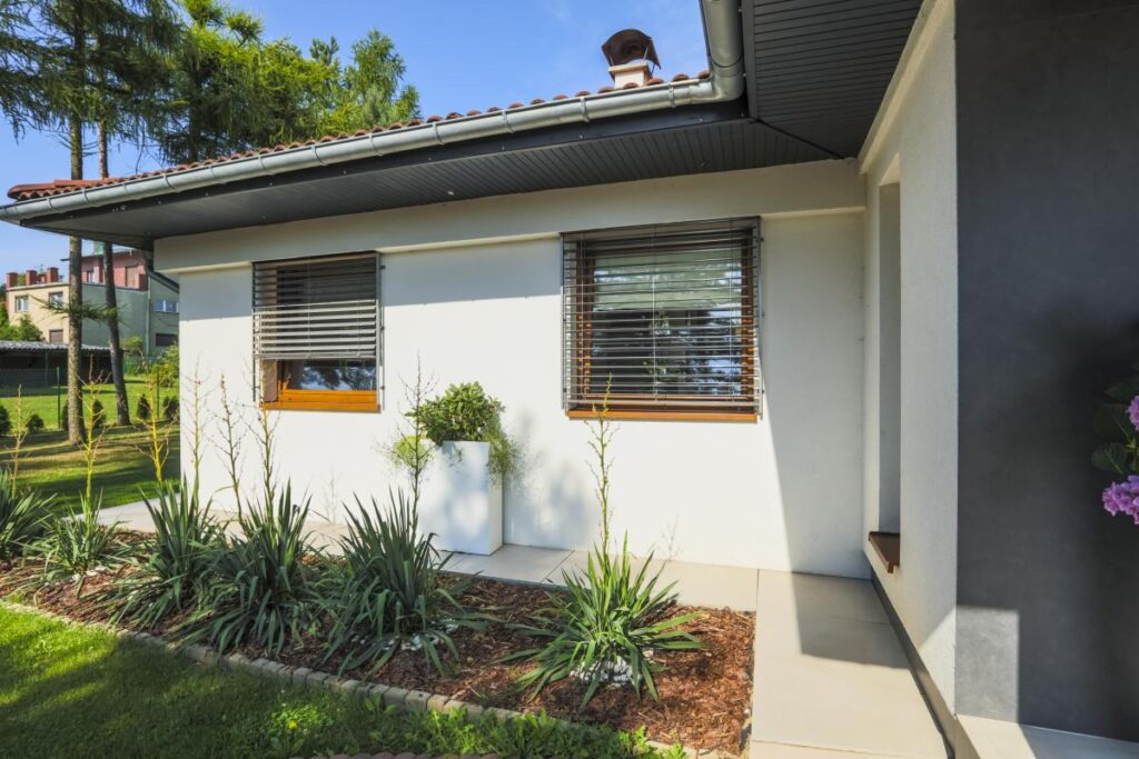 Nowoczesna, pozioma kreska lameli podnosi walory wizualne elewacji i może zwiększać atrakcyjność domu przy odsprzedaży.